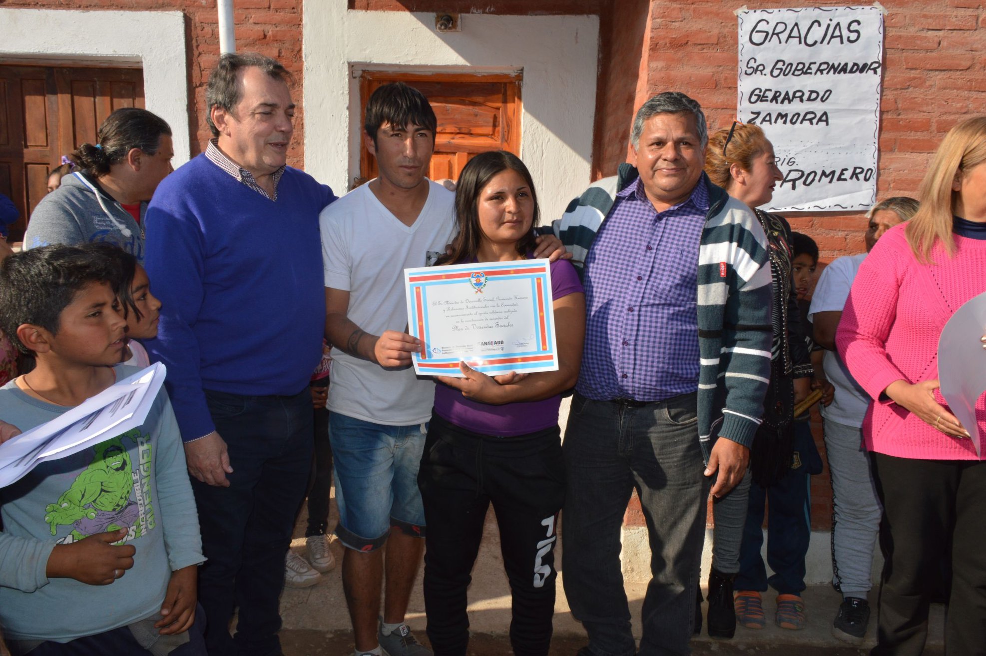 Continuando con el programa de viviendas sociales implementado por la ex gobernadora y actual diputada nacional, Dra. Claudia de Zamora, un total de 31 familias de barrios de la ciudad de La Banda y de localidades del departamento Banda accedieron a la casa digna. Las viviendas fueron construidas por las ONGs: Asociación Reflejos de Esperanza con su presidente, Mónica Gallo; Asociación Esperanza Vive a cargo de Lidia Ovejero; Club Defensores de Vilmer con su titular, Carola Farías; Asociación Santiagueña Acortando Caminos, presidida por Sergia Martínez; Asociación Ricardo Rojas dirigida por Rolando Romero; Asociación Liberar presidida por Nélida Ávila; Asociación Alfa y Omega dirigida por Alberto Penida; Campamento Solidario a cargo de Alicia Juárez; Cooperativa de Trabajo Unidad Barrial presidida por Duilio Ricardo Gerez y Un Verdadero Centro San Martin cuyo titular es Diego Sosa. En la inauguración estuvo el ministro de Desarrollo Social, Ángel Niccolai. Los beneficiarios se encuentran distribuidos en los barrios Avenida, 9 de Julio, Bajo de Vertiz, Villa Rojas, San Fernando, Textil, Independencia, Villa Raquel, Los Álamos II, Finca de Ramos y San Javier de la ciudad de La Banda, como así también en las localidades: Señora Pujio, La Bajada, El Puestito, Rodeana, La Tijera y Colonia María Elena en el departamento Banda. Ministerio de Desarrollo Social.
