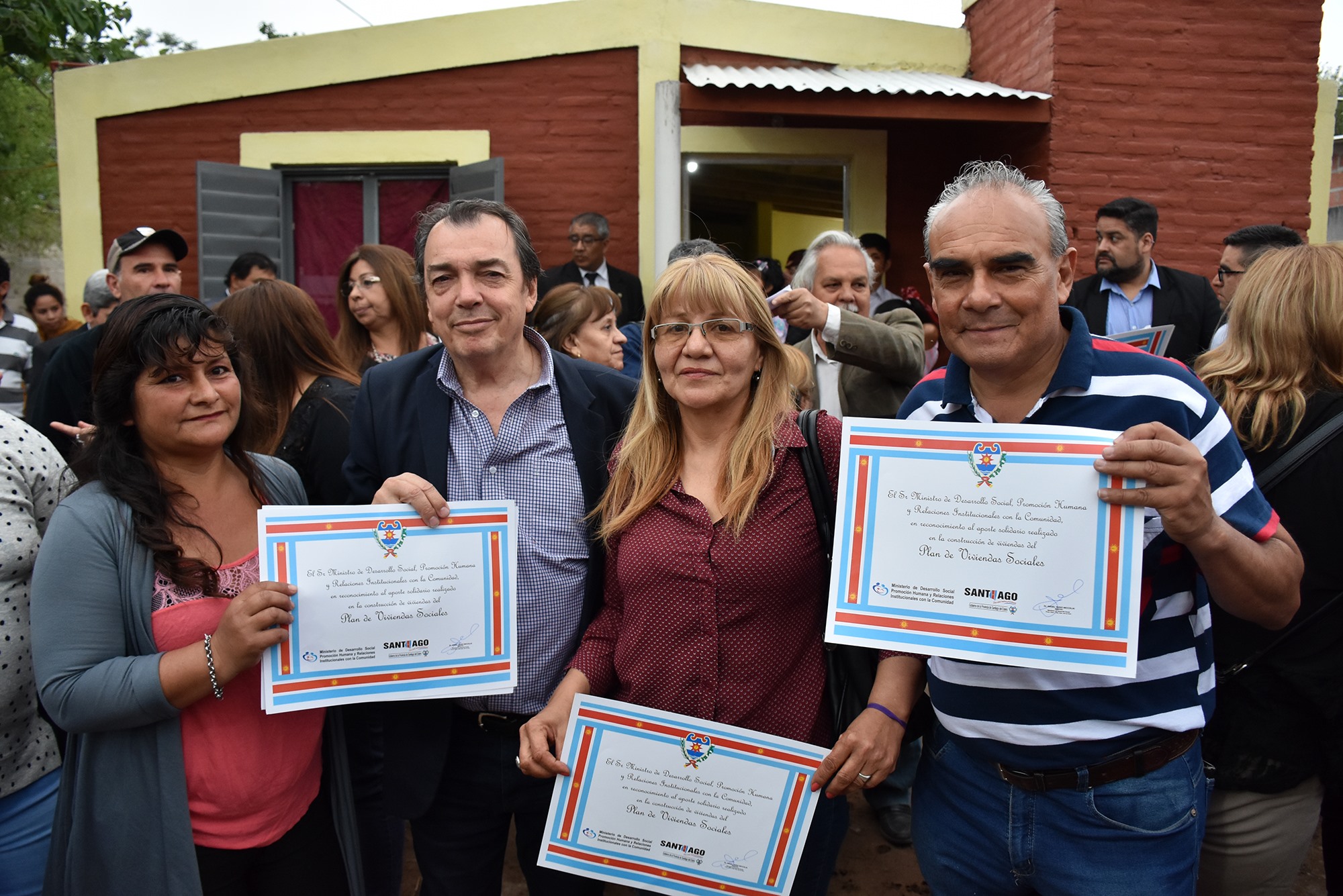 Ante un marco multitudinario de público, el Gobernador Gerardo Zamora acompañado por la ex gobernadora y actual diputada nacional, Claudia de Zamora, encabezaron la inauguración y entrega de 132 viviendas sociales que fueron construidas por 56 organizaciones no gubernamentales y por la municipalidad de la Capital. Acompañaron el acto, ministro de Desarrollo Social, Ángel Niccolai, subsecretario de Promoción Humana, Ernesto Fernández, intendenta de la Capital, Norma Fuentes y los dirigentes de las ONGs que construyeron las viviendas que están distribuidas en diferentes barrios: Industria, Los Flores, 8 de Abril, Bosco II, Bosco III, Bosco I, General Paz Santa Lucia, Libertad, Huaico Hondo, Mariano Moreno, Tradición, Cáceres, Borges, La Católica, Maco, Colon, Coesa, Santa Rosa de Lima, Primera Junta, Juan Felipe Ibarra, América del Sur, Mosconi, Juan Díaz de Solís, San Martin, Islas Malvinas, Almirante Brown, Bruno Volta, 750 viviendas, Villa del Carmen, Juramento y Ramón Carrillo. Ministerio de Desarrollo Social.