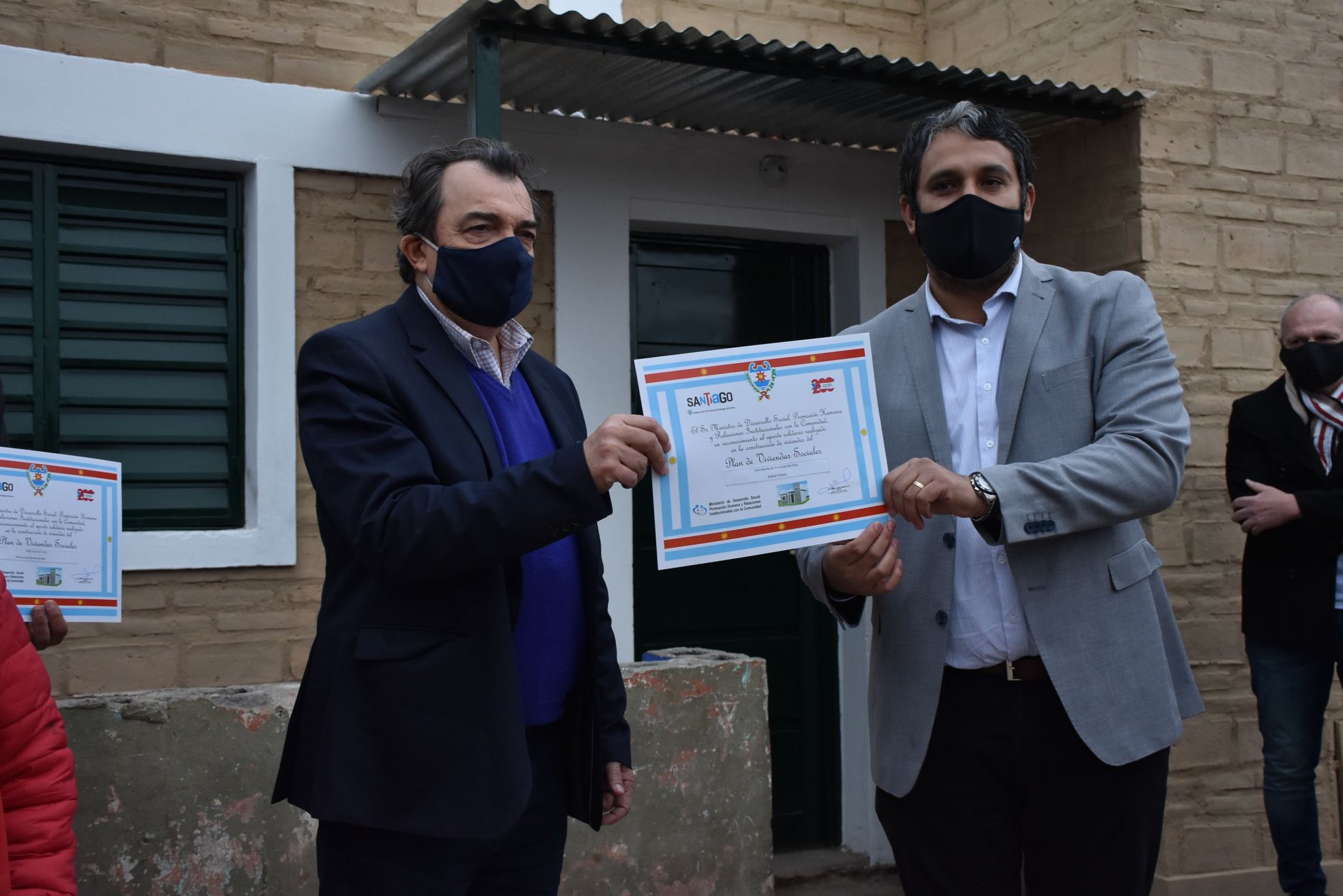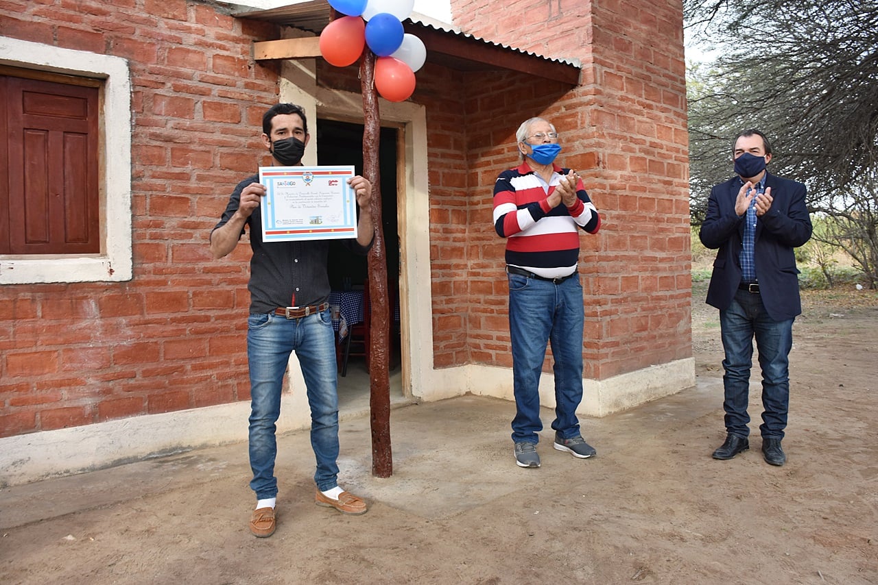 El gobierno de la provincia dejo oficialmente inauguradas diecisiete viviendas sociales totalmente amuebladas en la localidad de Negra Muerta, departamento Banda, con la presencia del ministro de Desarrollo Social, Dr. Ángel Niccolai acompañado del comisionado municipal de esa localidad, Gervasio Guzmán. La entrega a los beneficiarios se cumplió siguiendo estrictas medidas de seguridad impuestas por la pandemia del Covid – 19.