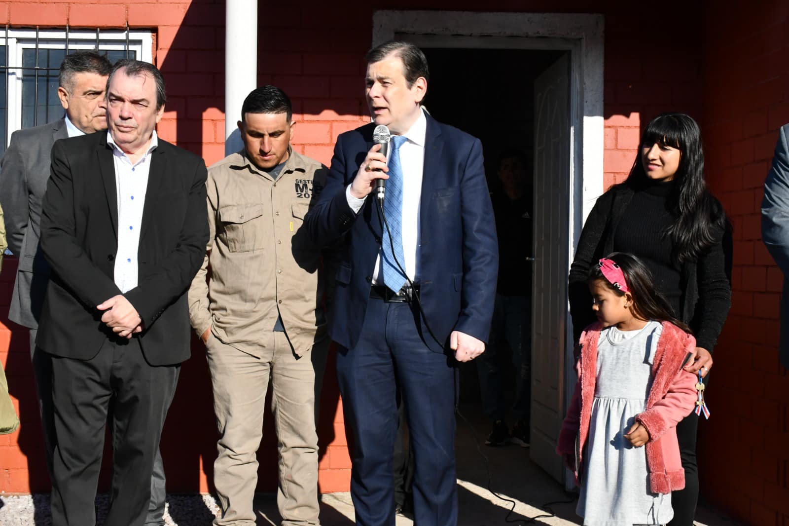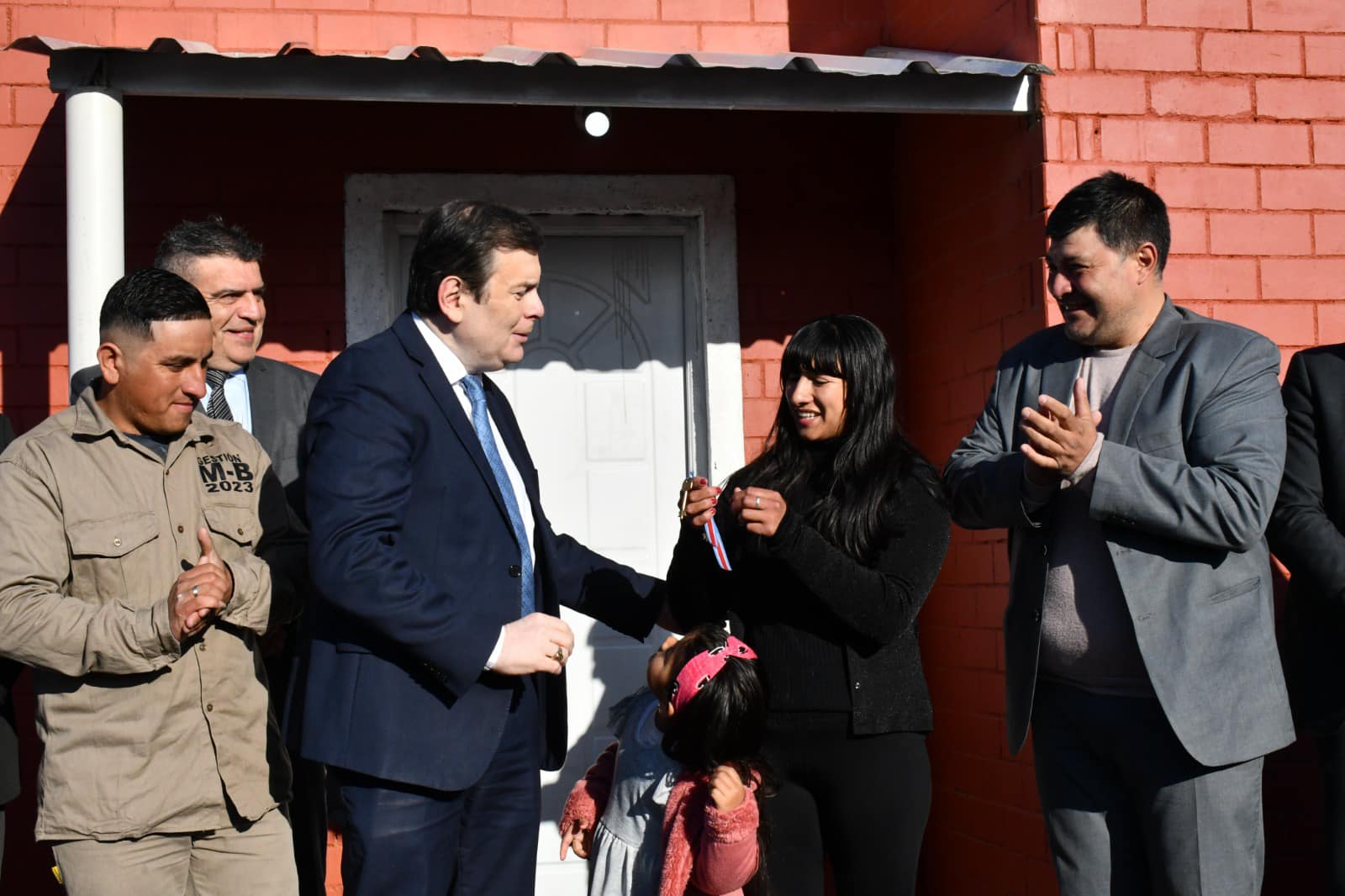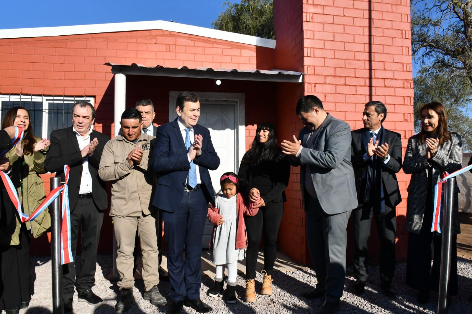 El gobernador Gerardo Zamora realizó el corte de cintas en el domicilio de Facundo Rivero y Luciana Moreyra, donde se hizo la entrega simbólica de llaves a las familias beneficiarias.